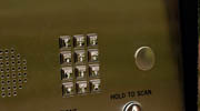 This stainless steel, lighted telephone entry system in Medina Ohio is the DoorKing 1835. It has a keypad, a phone connection and true duplex communication. It has a scrolling welcome screen and a scrolling name and/or address directory. It can be programmed at the keypad or remotely using a personal computer and the included software.