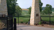 This Estate gate in Beachwood, Ohio was fabricated by the Ameristar Company and installed by Elite Entrance. This sweeping gate has a beautiful, horizontal aspect to it because the opening is so wide.